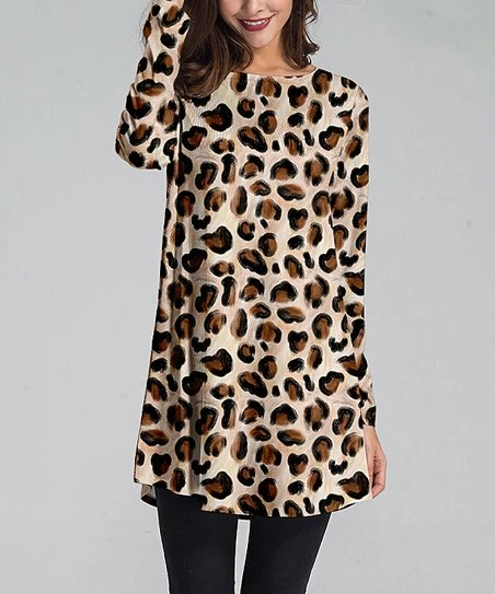 Refresh your tops-and-jeans collection with the lovely leopard detail of this relaxed long-sleeve tunic that’s spun with ample stretch for added comfort.