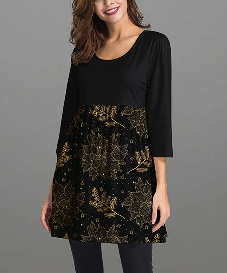 This empire-waist tunic offers a flattering fit with a flared silhouette while an artistic nature-inspired print sets this laid-back layer apart.
