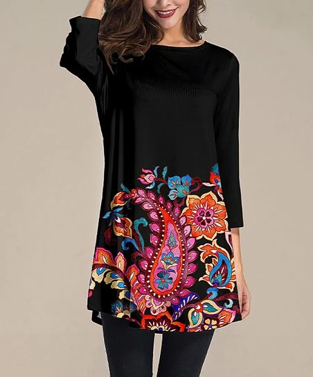 Breeze from daytime errands to dinner dates with polished ease in this relaxed-fit tunic, made with three-quarter length sleeves and a hint of stretch for comfortable, season-spanning wear.