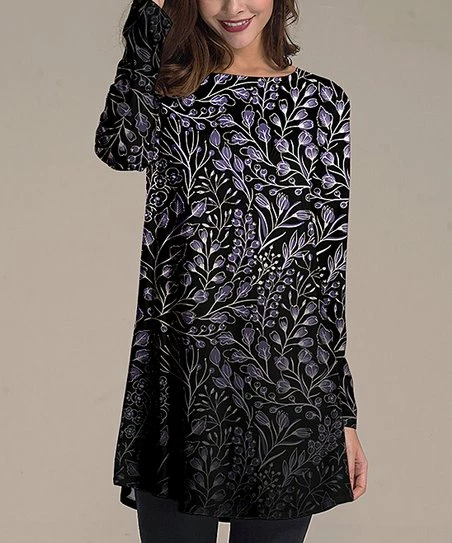 Whether you’re getting ready for work or dressing for the weekend, this long-sleeve tunic has you covered with its delicate leaf print and relaxed fit.
