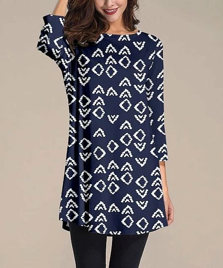 Embrace relaxed grace in this flowy tunic featuring three-quarter length sleeves to give you just-enough coverage. A hint of stretch ensures versatile comfort throughout the day.