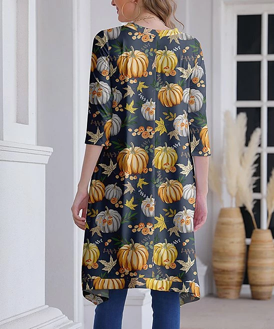 Get into the autumn spirit with this dramatic hi-low tunic that features a wonderfully festive print and stretch-enhanced fabric for a comfy fit.