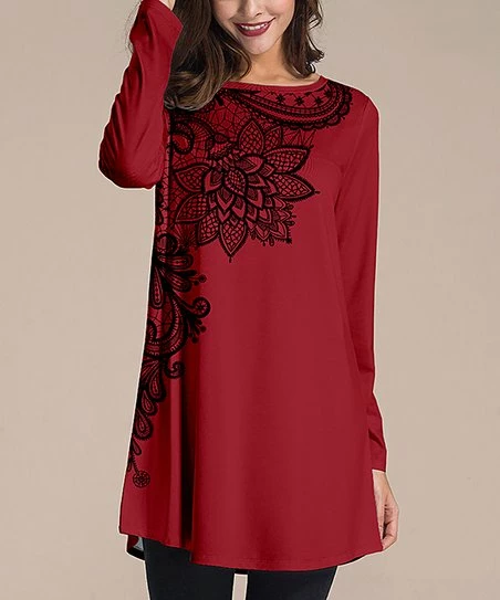 Pair your favorite jeans or leggings with this boldly patterned tunic boasting cozy long sleeves and a comfortable dose of stretch.