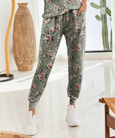 Cruise through the weekend in complete comfort wearing these pretty floral joggers that boast cozy hacci knit fabric and an adjustable drawstring waist. Side pockets await small items like your lipstick and keys.