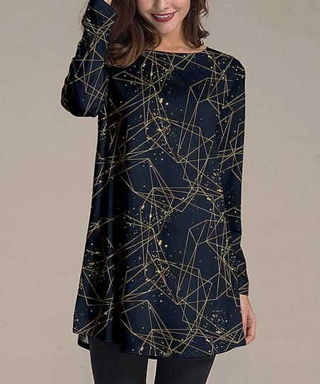 Bring a little casual grace to your everyday look with the elegant print design and flowing fit of this comfy long-sleeve tunic.