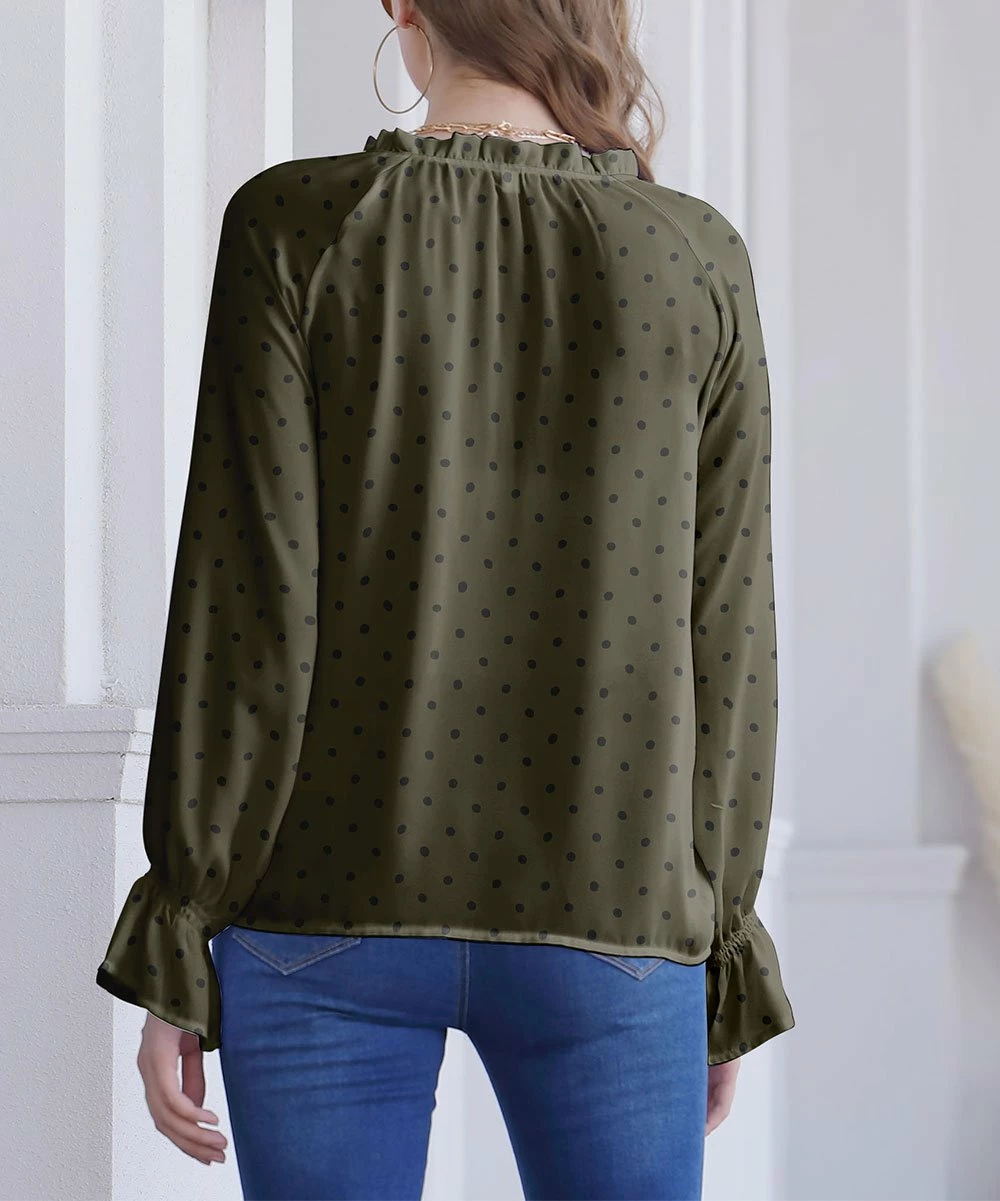 Opt for poised style in this airy chiffon tunic featuring a tied accent at the V-neckline. Long-sleeves offer comfortable full coverage.