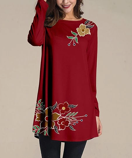 Stay comfortable throughout the transitioning seasons in this free-flowing tunic that boasts long sleeves and a bold design.